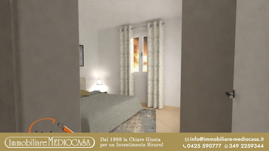 La zona notte è composta da una camera matrimoniale molto luminosa, mentre il bagno finestrato, dotato di doccia, è rifinito con materiali contemporanei ed eleganti.