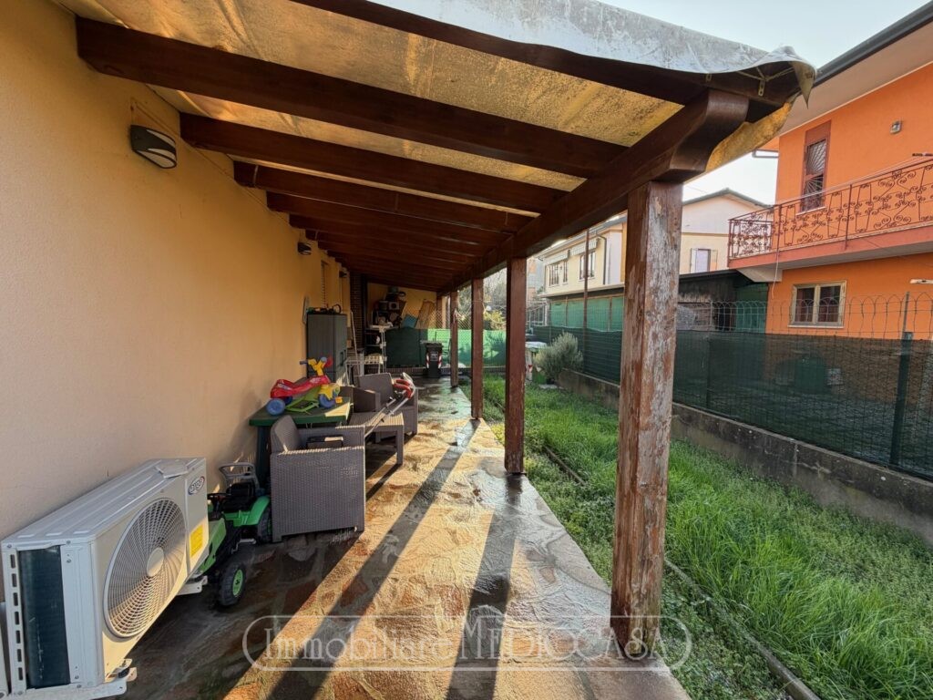 Completano la proprietà un grande giardino esclusivo con cancelletto pedonale indipendente e un comodo garage di 22 mq, accessibile tramite cancello automatico e rampa riscaldata.