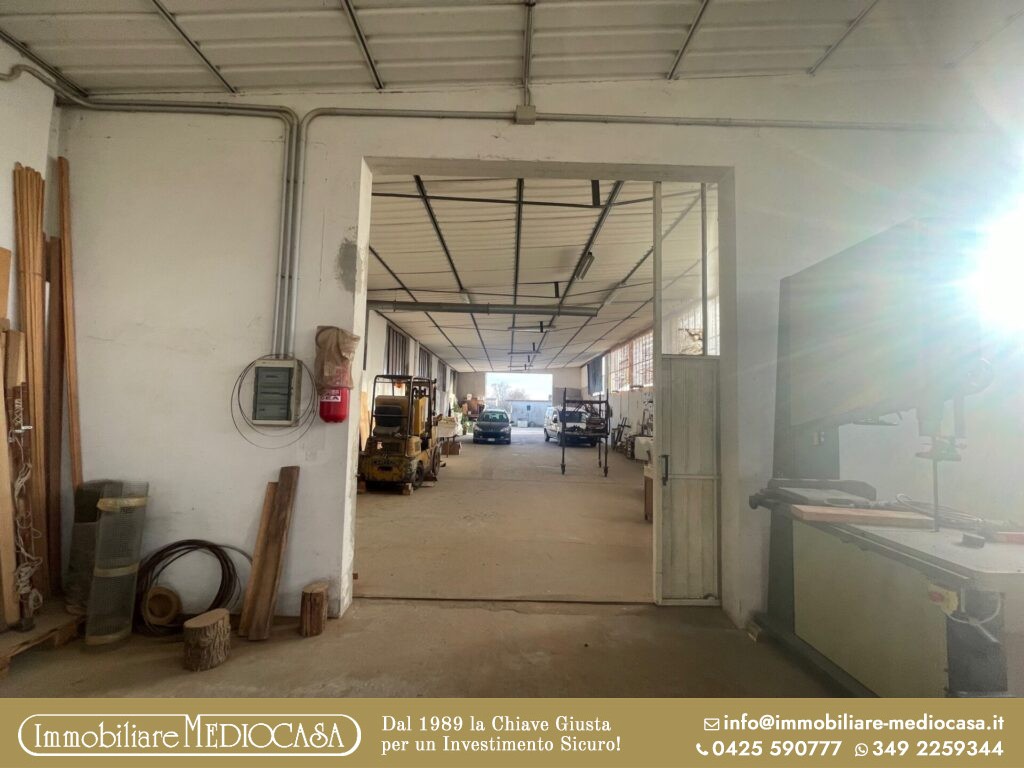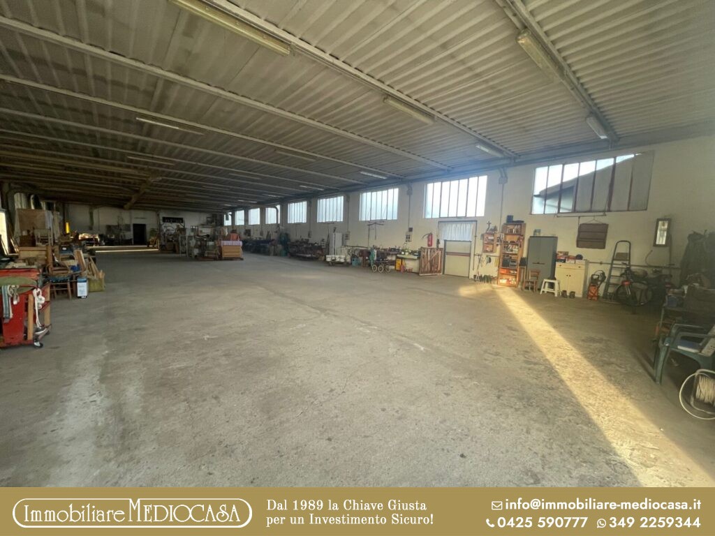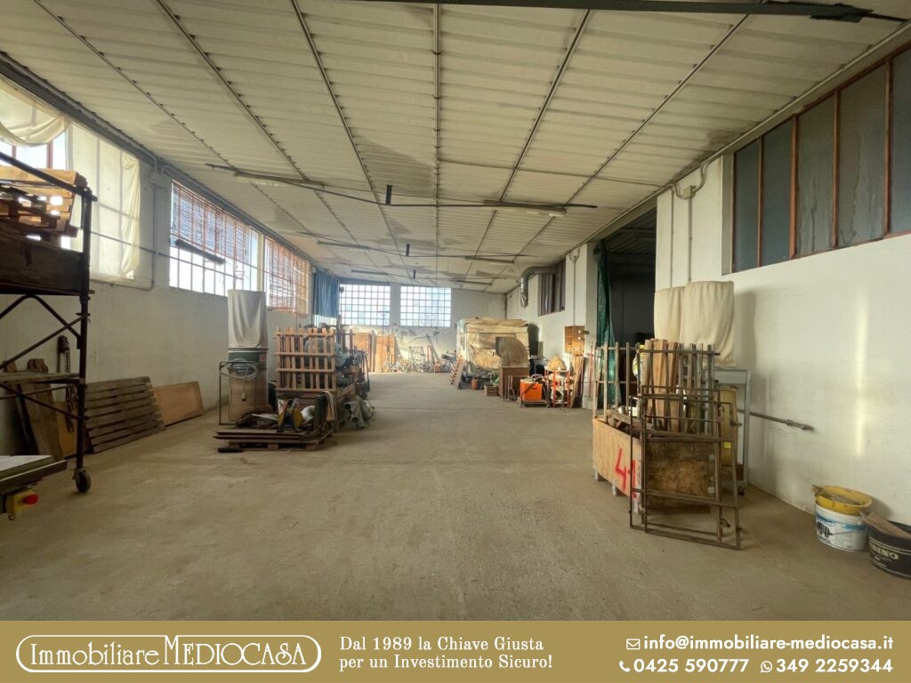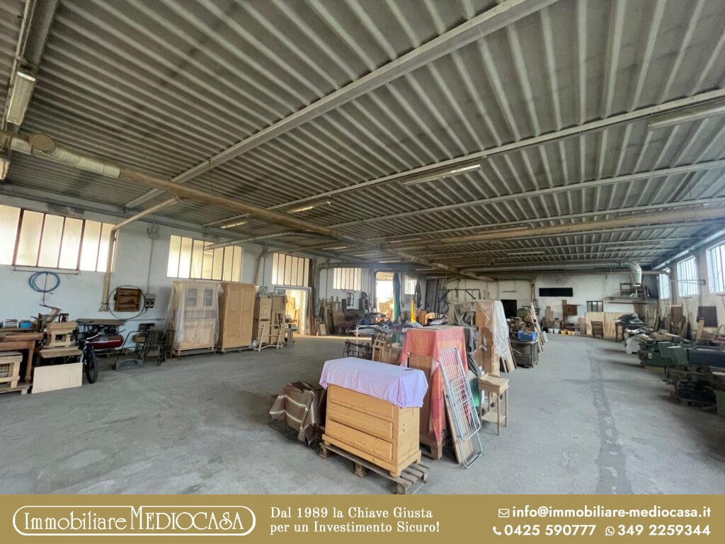 A Menà di Castagnaro, in posizione particolarmente comoda alla superstrada e quindi facilmente raggiungibile, proponiamo in vendita un capannone ad uso artigianale già pronto per attività di falegnameria, ma estremamente versatile e adatto anche ad altre tipologie di lavorazioni o attività produttive.