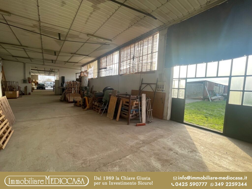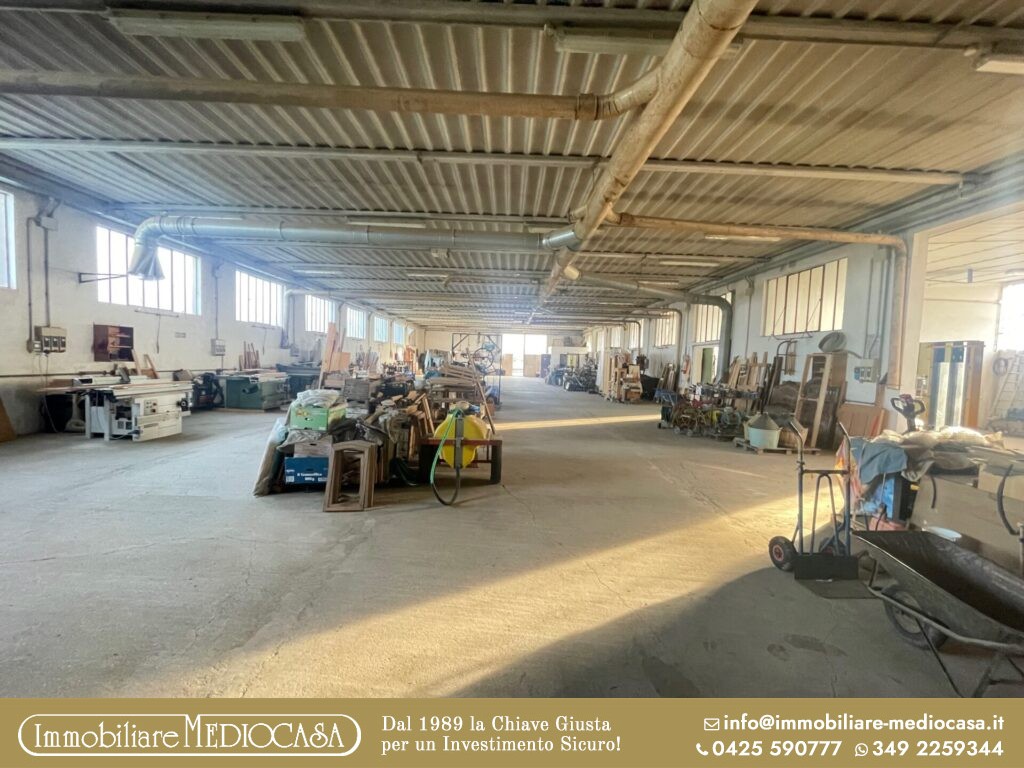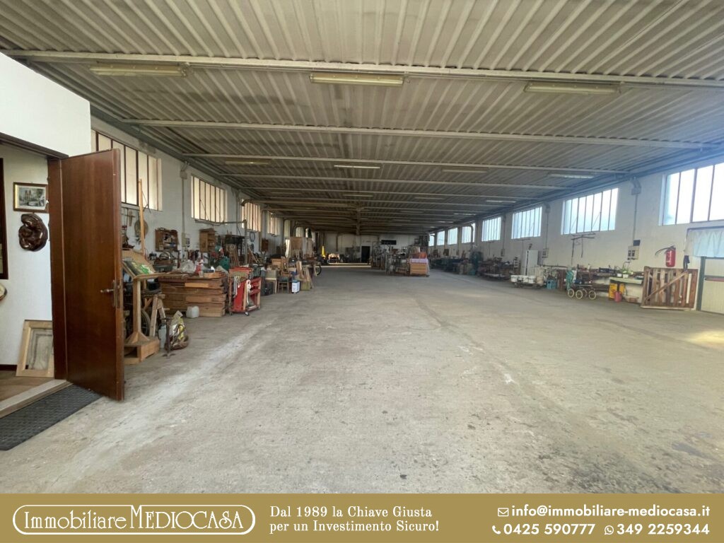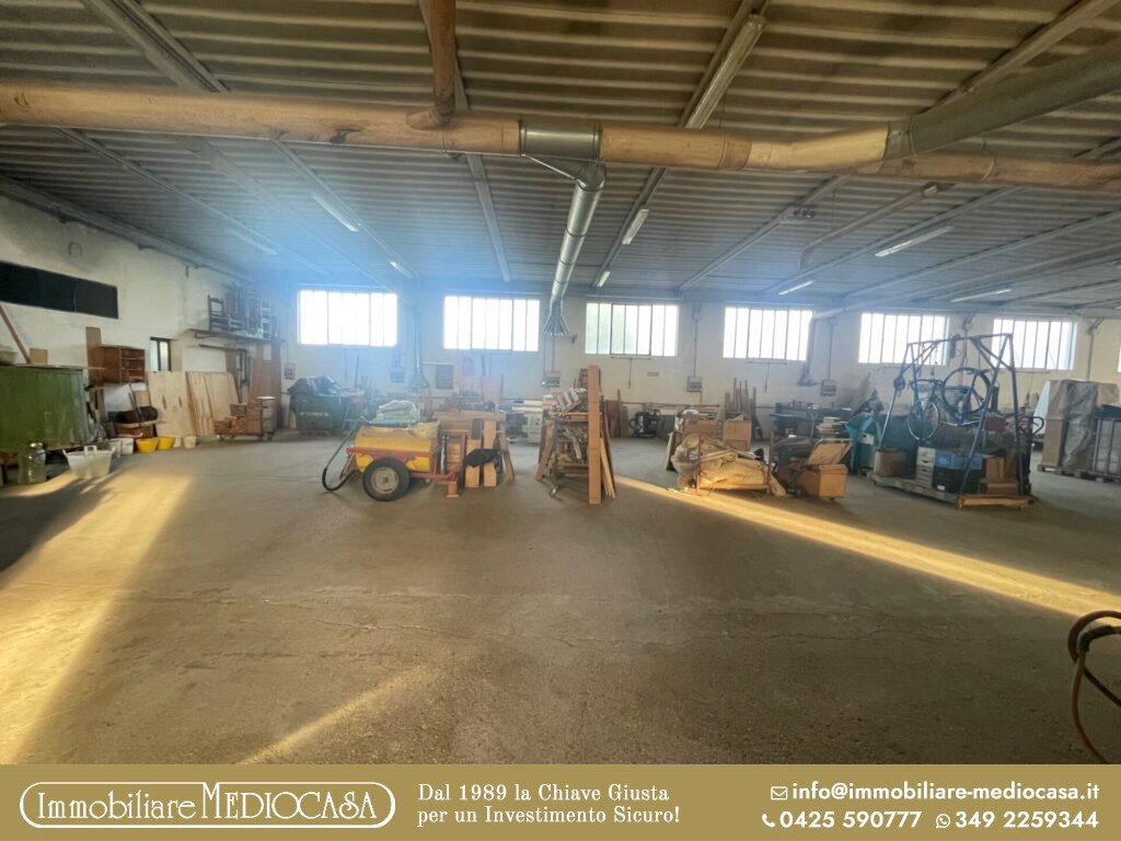 A Menà di Castagnaro, in posizione particolarmente comoda alla superstrada e quindi facilmente raggiungibile, proponiamo in vendita un capannone ad uso artigianale già pronto per attività di falegnameria, ma estremamente versatile e adatto anche ad altre tipologie di lavorazioni o attività produttive.