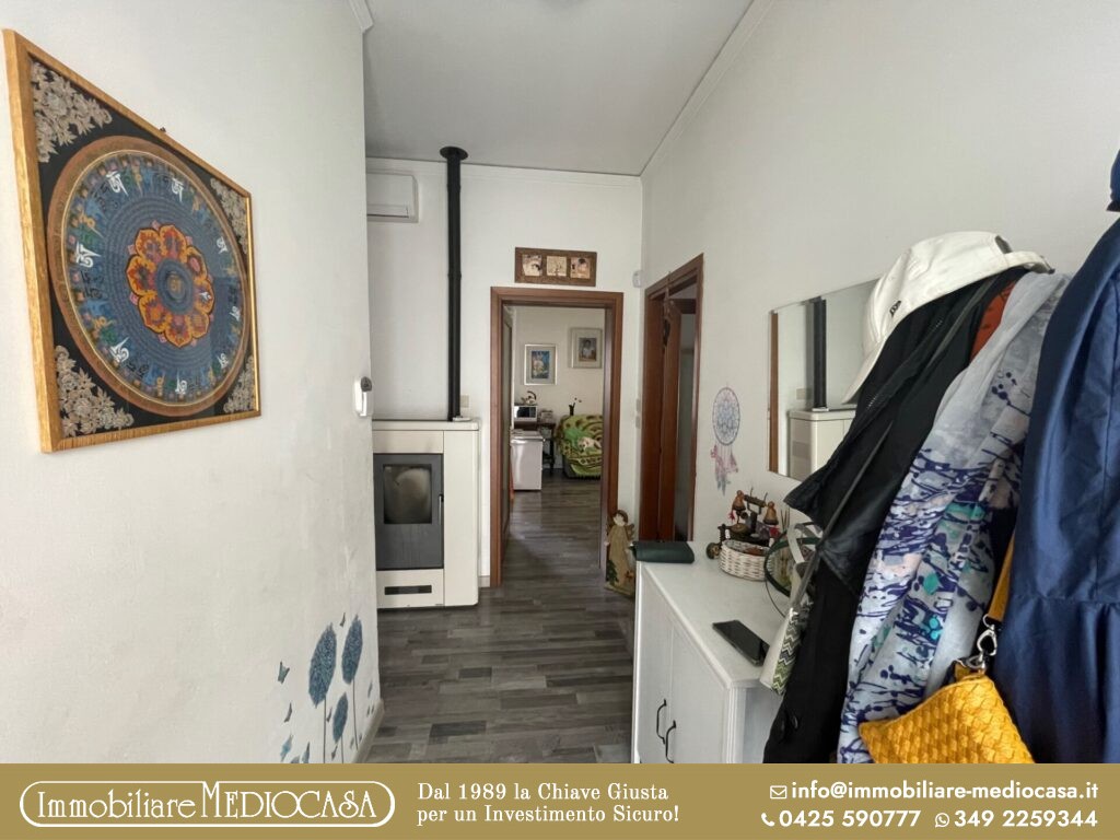 L’ingresso principale apre su una accogliente zona giorno, composta da cucinotto separato, sala da pranzo e soggiorno luminoso, ambienti accoglienti e funzionali per la vita quotidiana.