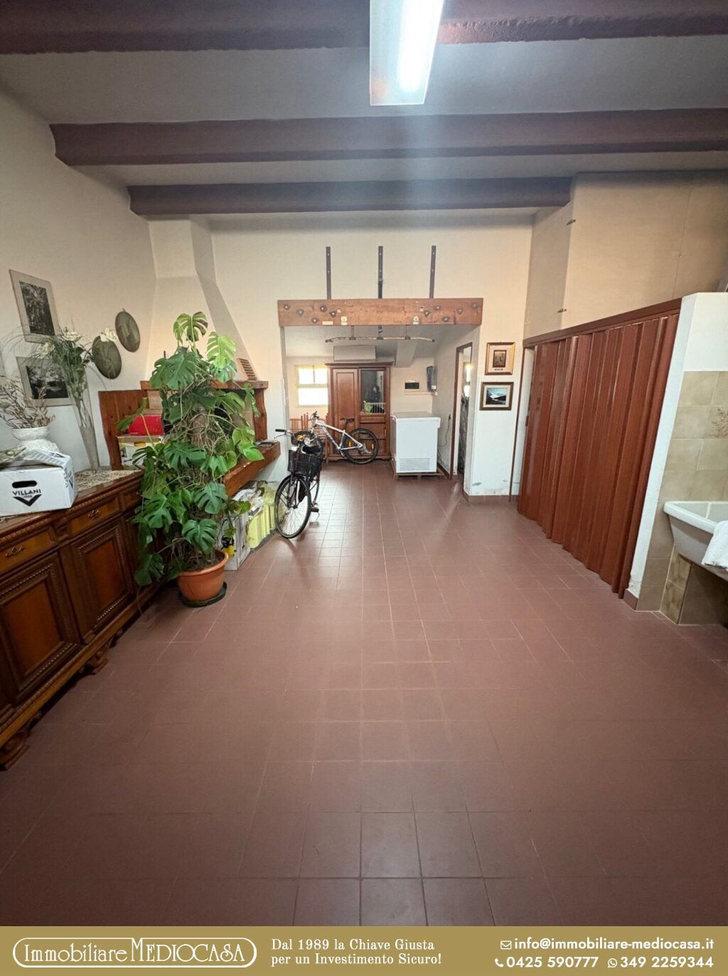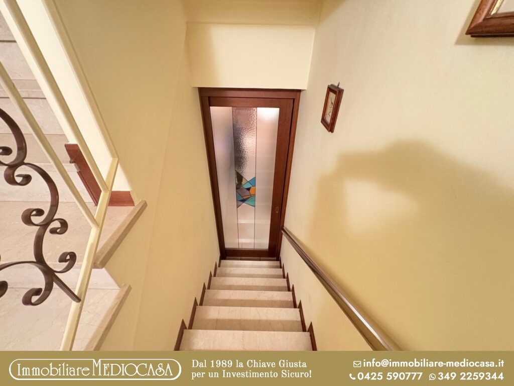 Sempre al piano terra dispone di un bagno e di una zona lavanderia/ripostiglio comunicante con l’ampio garage doppio utilizzabile come taverna – con camino da braci – una cantina, la zona caldaia con lavanderia e un altro garage con ricovero attrezzi e legnaia con accesso dall’esterno.